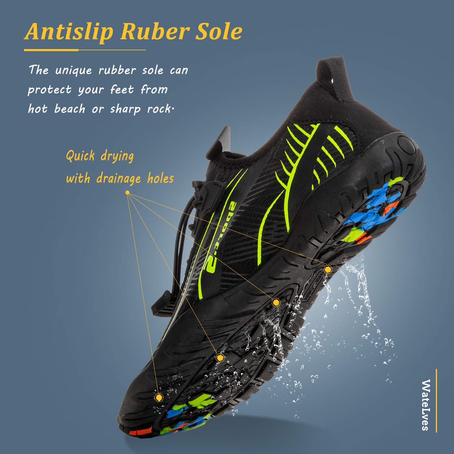 - Quick dry with drainage holes : Unique and top-quality sole.