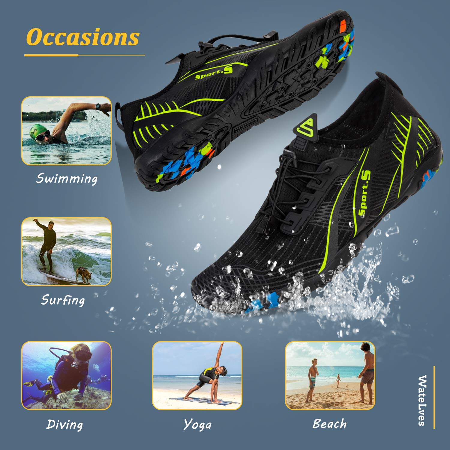 Unisex Water Shoes FBN-934-Black green
