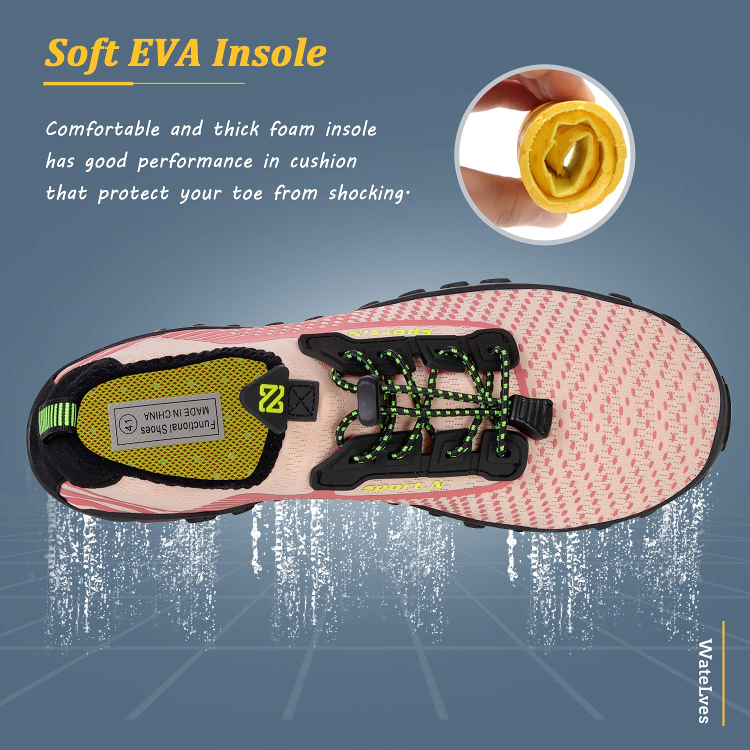 - Foot safety and comfortable: comfortable and thick foam arch-support insert inside of them, flexible and thick enough to protect your feet from stepping on rock and stone.