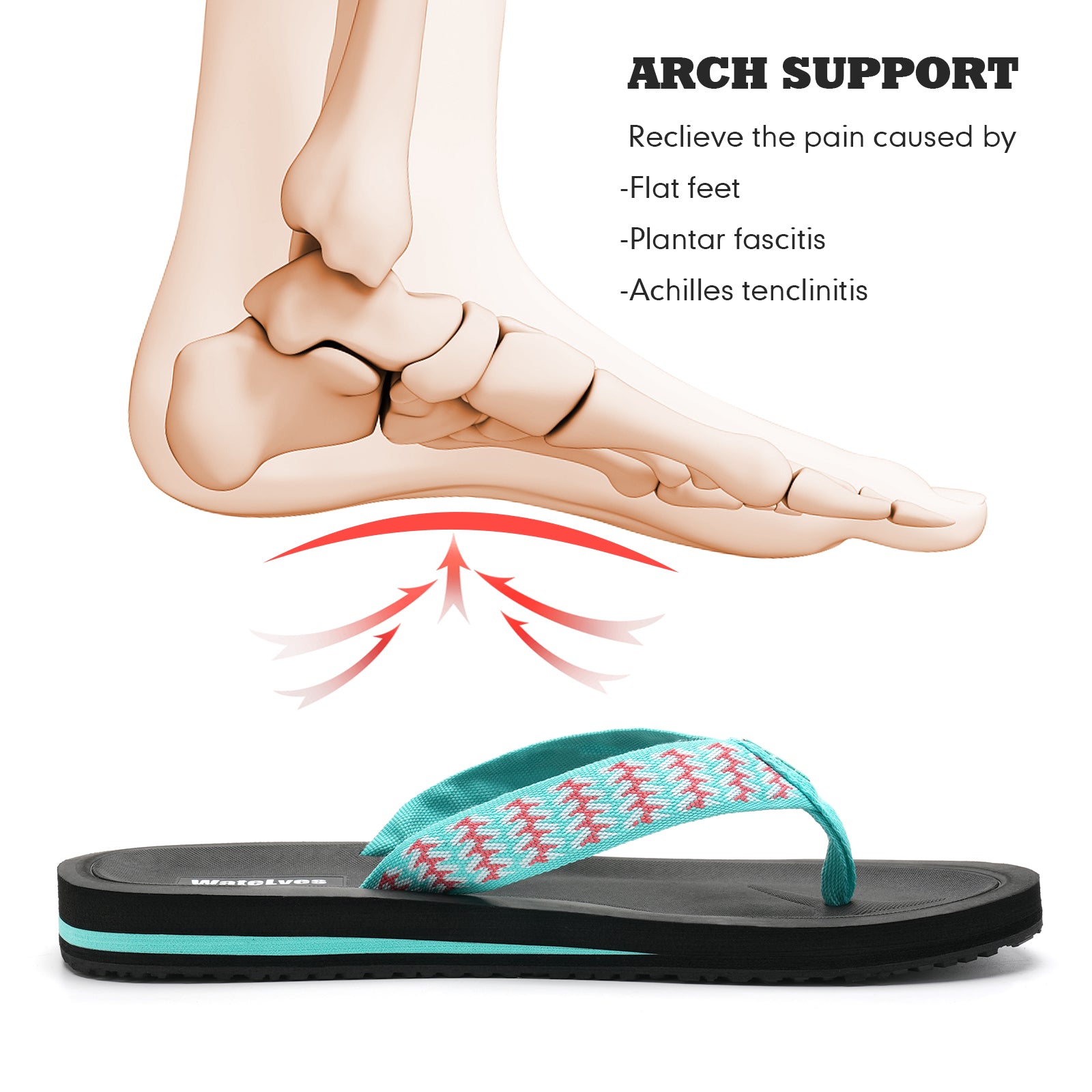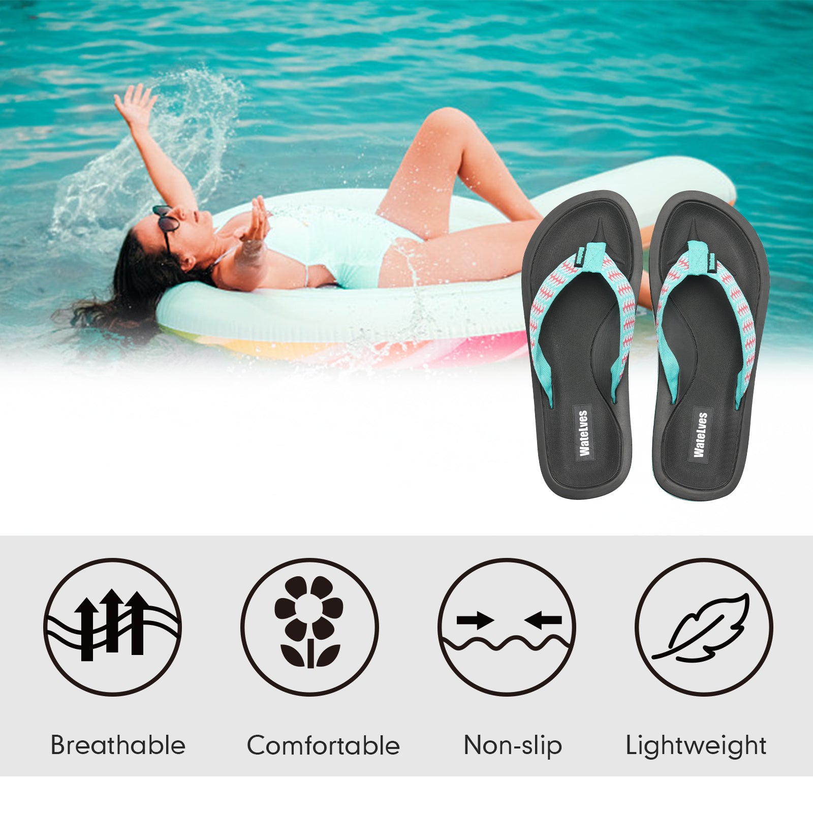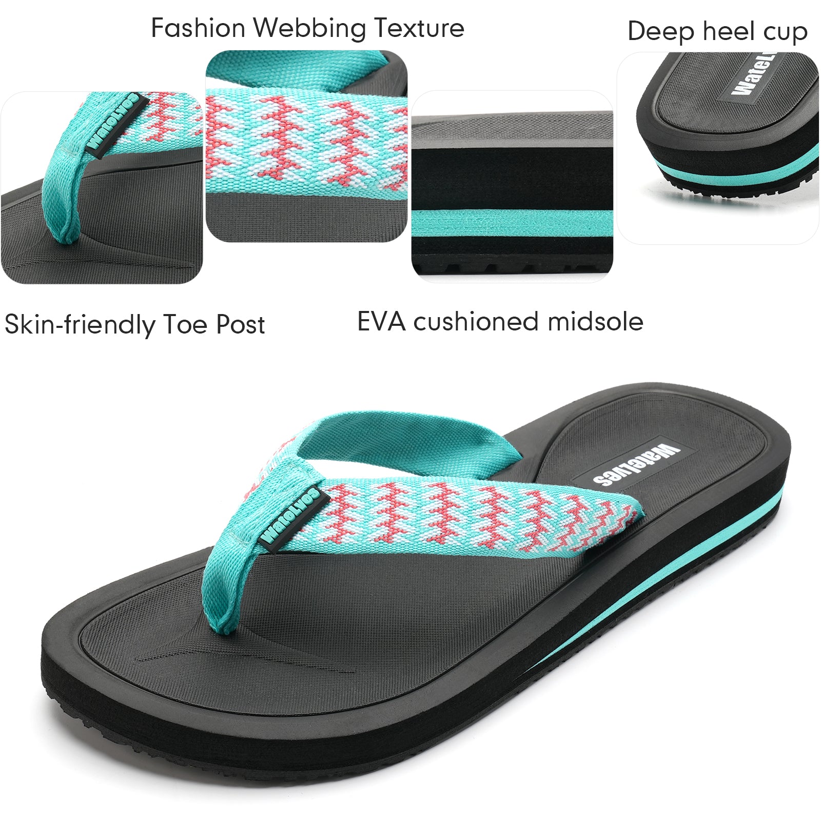 - ANTI-SLIP OUTSOLE: The wear-resistant outsole with anti-slip texture design adds grip and traction to this women's flip-flops.